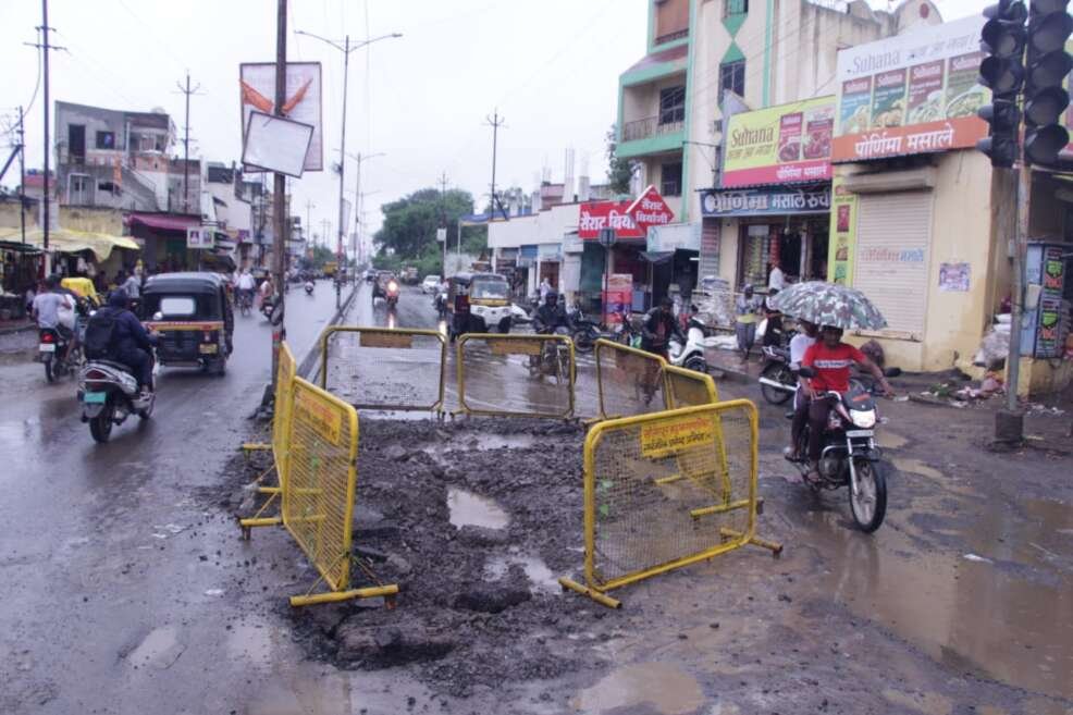 सोलापूर ः महाराष्ट्र राज्य हवामान खात्याने सोलापूर सह विविध ठिकाणी पावसाचा अंदाज दिला आसताना सत्तरफुट रोड चौकात चारदिवस झाले. बॅरीकेट लावले दिसुन येते आहे. त्यामुळे वाहतूकीची कोंडी होते.प्रशासन काही कारवाई करणार का? (छायाचित्र केवल तिवारी)
