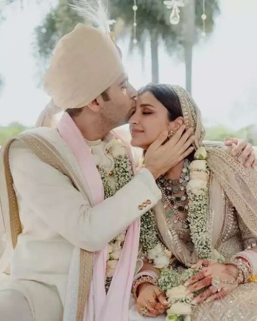 लोकप्रिय बॉलिवूड अभिनेत्री परिणीती चोप्रा नुकतीच आप नेते राघव चड्डासोबत विवाहबंधनात अडकली आहे. बॉलिवूडमधील आणखी एक अभिनेत्री आता मिसेस झाली आहे. त्यांनी २४ सप्टेंबर रोजी उदयपूर येथे लग्नगाठ बांधली. चाहते त्यांच्या लग्नाच्या फोटो पाहण्यासाठी आतुर झाले होते. आता अखेर त्यांच्या लग्नाचे फोटो समोर आले आहेत. या फोटोंनी चाहत्यांची मनं जिंकून घेतली आहेत. अभिनेत्रीचा लूक पाहून चाहते तिच्या प्रेमात पडले आहेत. त्यांनी लग्नासाठी पांढऱ्या आणि मोती रंगाची थीम ठेवली होती. तिचा लेहेंगाही मोती रंगाचा आहे.