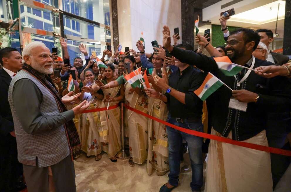 पंतप्रधान नरेंद्र मोदी यांनी 20 व्या आसियान-भारत शिखर परिषद आणि 18 व्या पूर्व आशिया शिखर परिषदेला उपस्थित होण्यापूर्वी आज भारतीय वंशाच्या नागरिकांची भेट घेत संवाद साधला आहे. महत्वाचे म्हणजे इंडोनेशियन समुदायाच्या सदस्यांनी पतंप्रधान मोदींचे जंगी स्वागत केले आहे.