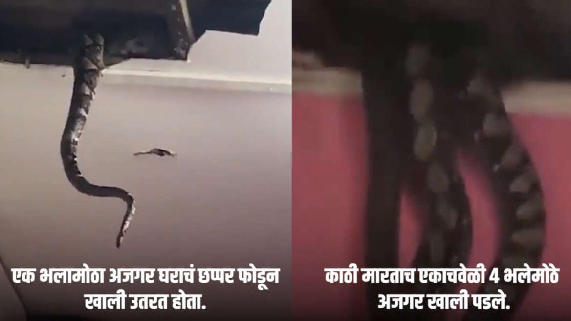 एका घराच्या छतात लपले होते 4 अजगर , काठी मारताच छतच कोसळलं…