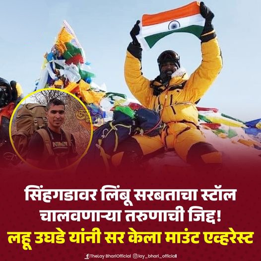 किल्ले सिंहगड येथे लिंबू सरबताचा स्टॉल चालवणाऱ्या लहू उघडे या गरीब घरातील तरुणाने सर्व परिस्थितींवर मात करत माउंट एव्हरेस्ट सर करण्याचे आपले स्वप्न पूर्ण केले आणि जगभरातील एव्हरेस्ट वीरांपैकी एक होण्याचा मान मिळवला.
