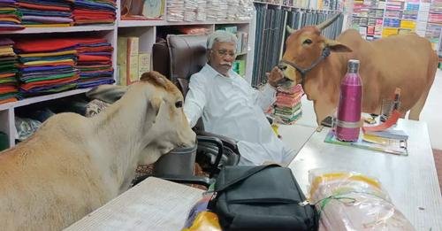 जिल्ह्यातील चिमूर शहरातील गाईची सध्या जोरदार चर्चा आहे. शहरातील बाजारात पूजा वस्त्र भांडार दुकान आहे. गाय थेट या दुकानाच्या आत शिरते. दुकान मालक ओमप्रकाश जाकोटीया यांना गोंजारते. दुकान मालकालाही या गाईचा लळा लागला आहे. गाय दुकानात आल्यावर जाकोटिया तिला गूळ खायला देतात.