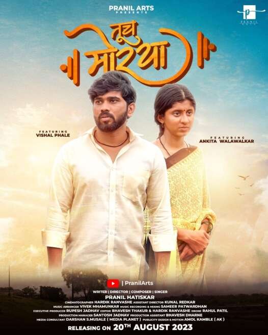 “दादर अभिमान गीता”च्या अभूतपूर्व यशानंतर प्रणिल आर्ट्स या निर्मिती संस्थेचा दुसरा म्युझिक व्हिडीओ येत्या २० ऑगस्टला विनायक चतुर्थीच्या मुहूर्तावर प्रदर्शित होण्यास आता सज्ज झाला आहे. “तूच मोरया” असे या म्युझिक व्हिडीओचे नाव असून आपल्या सर्वांची लाडकी कोकणहार्टेड गर्ल अर्थातच अंकिता वालावलकर या म्युझिक व्हिडीओमध्ये झळकणार आहे. अंकिताचा हा पहिला-वहिला म्युझिक व्हिडिओ आहे. अंकिता आणि अभिनेता विशाल फाळे ही नवी जोडी या गाण्याच्या निमित्ताने प्रेक्षकांच्या भेटीला येणार असून नुकतेच या म्युझिक व्हिडीओचे पोस्टर सोशल मीडियावर लॉंच करण्यात आले आहे.
