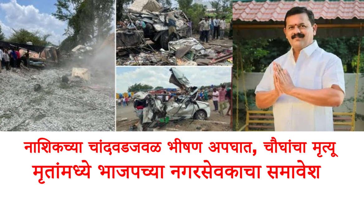जिल्ह्यातील चांदवडजवळ भरधाव कारने कंटेनरला धडक दिल्याने भीषण अपघात झाला आहे. यात कारमधील चार जणांचा जागीच मृत्यू झाला आहे. मृतांमध्ये भाजपच्या नगरसेवकाचा देखील समावेश आहे. आज सकाळी 7 वाजेच्या सुमारास हा अपघात झाला.