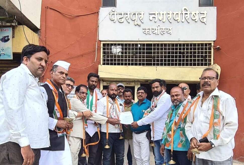 पंढरपूर शहरात नगरपरिषदेच्यावतीने करण्यात आलेल्या निकृष्ट दर्जाच्या रस्त्यांची तात्काळ दुरूस्ती करण्यात यावी व आषाढी यात्रा कालावधीत केलेल्या रस्त्यांच्या कामांची सखोल चौकशी करून संबंधितांवर तातडीने कारवाई करण्यात यावी, या मागणीसाठी पंढरपूर शहर कॉंग्रेस कमिटीच्यावतीने पंढरपूर नगरपरिषदेसमोर टाळ वाजवून भजन म्हणून अनोखे आंदोलन केले. यानंतर प्रशासनाच्यावतीने नायब तहसिलदार कोळी यांनी कॉंग्रेसचे निवेदन स्वीकारले.