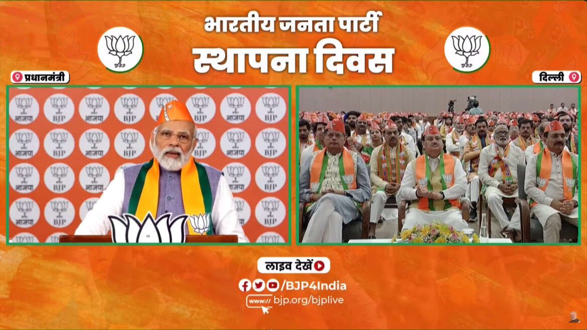 पंतप्रधान नरेंद्र मोदी- भाजपच्या स्थापना दिनानिमित्त पक्ष कार्यकर्त्यांना संबोधित करत आहेत.