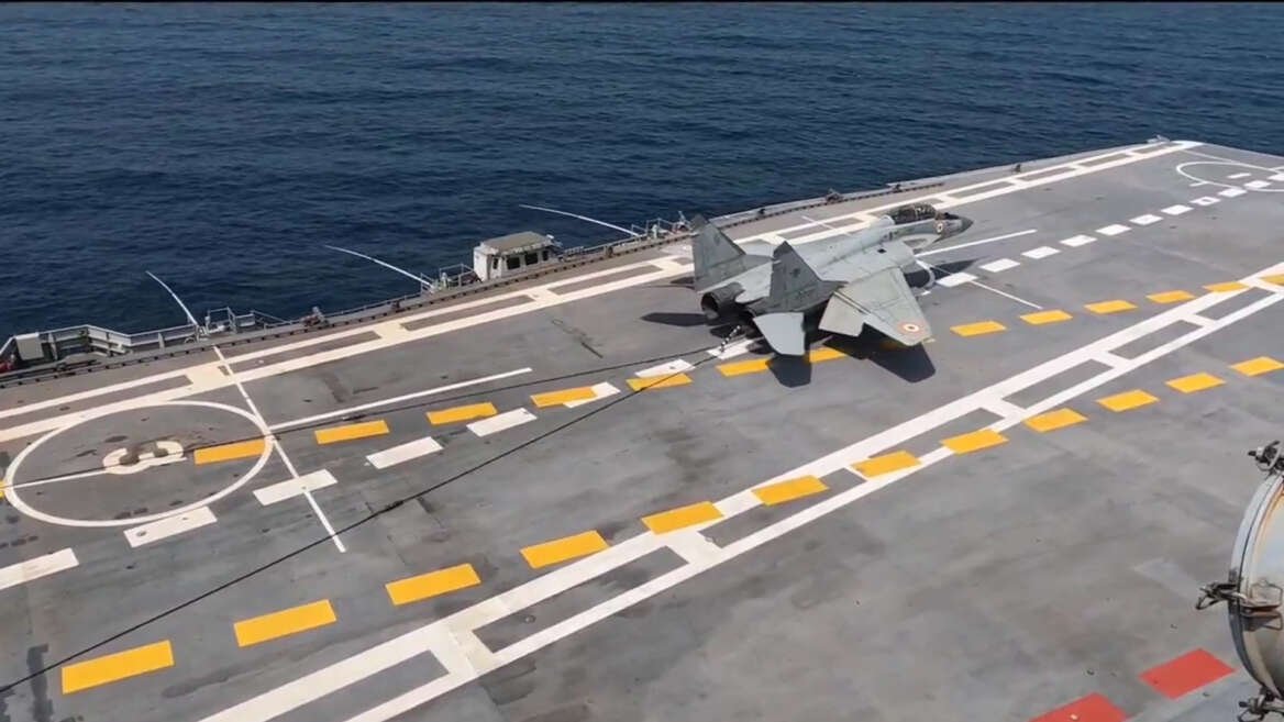 Maiden landing of #MiG29K on the Indigenous Aircraft Carrier INS Vikrant. #IndianNavy #INSVikrant pic.twitter.com/5Lv9gL6q0G