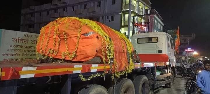अयोध्या येथे श्रीप्रभू रामचंद्र यांच्या मूर्ती घडवण्यासाठी कर्नाटकातील कारकल येथून आलेली शीला सोलापुरातील छत्रपती संभाजी राजे चौकाजवळील हॉटेल अँबेसिडर समोर शुक्रवारी रात्री आली असता शेकडो भाविकांनी दर्शनाचा लाभ घेतला.