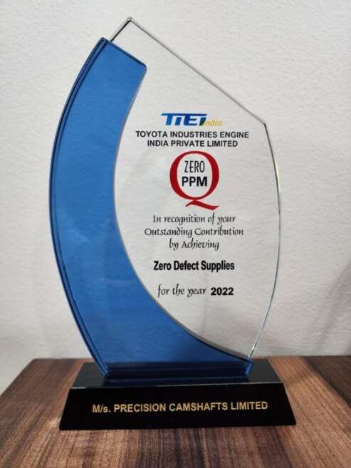 सोलापूर – प्रिसिजन कॅमशॉफ्ट लिमिटेड या कंपनीला २०२२ मधील व्यवसायिक कामगिरीसाठी टोयोटा मोटर्स कंपनीकडून दोन नामांकित पुरस्काराने सन्मानित करण्यात आले आहे. पहिला पुरस्कार “झिरो डिफेक्ट सप्लाईज” चा आहे, म्हणजेच २०२२ च्या संपूर्ण वर्षात प्रिसिजनने पुरवलेल्या कॅमशाफ्टमध्ये कोणतेही दोष नव्हते, प्रिसिजनने टोयोटा मोटर्सला संपूर्ण २०२२ या वर्षात पुरवठा केलेल्या कॅमशाफ्टमध्ये एकही डिफेक्ट नव्हता. हा पुरस्कार मिळणे हे उत्पादनाच्या गुणवत्तेमध्ये प्रिसिजनचे सातत्य दर्शवते. मागील वर्षात प्रिसिजनने टोयोटा मोटर्स कंपनीला कोणत्याही दोषाशिवाय २ लाख कॅमशाफ्टचा पुरवठा केला आहे.