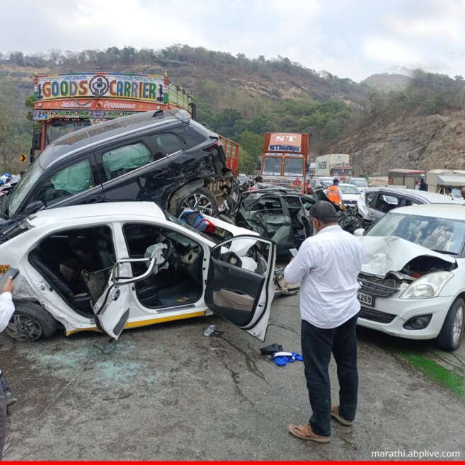 गेल्या काही दिवसांपासून मुंबई-पुणे महामार्गावरील अपघातात वाढ झाल्याचे पाहायला मिळत आहे. वाहन चालक नियम मोडत वाहन चालवत असल्याने या महामार्गावर अपघातात वाढ झाल्याचे सांगण्यात येत आहे. मुंबई-पुणे महामार्गावर आज खोपोलीजवळ एक विचित्र अपघात घडल्याची माहिती समोर आली आहे. या अपघातात एकूण 11 वाहने एकमेकांना धडकली. खोपोली एक्झिटजवळ हा अपघात घडला आहे. सुदैवाने या अपघातात कोणतीही जीवितहानी झाली नाही. महामार्गावरील बोरघाटात गेल्या काही दिवसांत बऱ्याच अपघातांची नोंद करण्यात आली आहे. आज देखील बोरघाट उतरत असताना हा अपघात झाला आहे. खोपोलीच्या एक्झिटजवळ ट्रक चालकाचा वाहनावरील ताबा सुटल्याने हा विचित्र अपघात घडला. यामध्ये ट्रकने तब्बल 11 वाहनांना धडक दिली. या घटनेनंतर ट्रक चालक हा पसार झाला आहे. त्यामुळे रायगड पोलिसांकडून या पसार झालेल्या वाहन चालकाचा शोध घेण्यात येत आहे. बोरघाटाच्या उतारावर हा अपघात घडल्याने यामध्ये मोठ्या संख्येने वाहनांचे नुकसान झाले आहे. तर या घटनेतील जखमींना जवळच्या रुग्णालयात दाखल करण्यात आल्याची माहिती पोलिसांकडून देण्यात आली आहे.