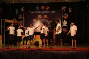 पहिल्या गटातील कार्यशाळेत देवदत्त पाठक आणि मिलिंद केळकर यांनी मुद्राअभिनय, संघर्ष, कथानकाचं बीज, कथानक, कथानक आणि उपकथानकाची जोडणी, खलप्रवृत्ती अशी विविध कौशल्ये घेतली. ती कौशल्ये देहबोली, संवाद, विसंगती, अभिनयाने विद्यार्थ्यांनी उत्साहात केली. सभोवतालची माणसे, आजूबाजूला घडणाऱ्या घटना, चांगल्या गोष्टी कृतीत आणणे, आदी स्वत:च्या अभिनय कौशल्यासाठी उपयोग करावा, हे ही कार्यशाळेत सांगण्यात आलं. यातील मुलांशी पत्रकार शीतल करदेकर, प्रफुल्ल फडके आणि संतोष खामगावकर यांनी संवाद साधला.