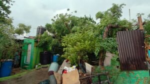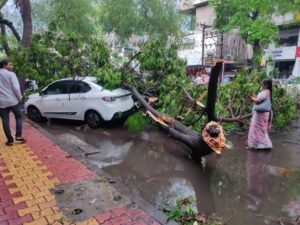 शुक्रवारी दिवसभर ढगाळ वातावरण होते, दुपारी साडेचारच्या सुमारास मात्र आकाशात ढग दाटून आले, वादळी वारा सुरू झाला, विजेच्या कडकडाट सुरु झाला आणि जोरदार वाऱ्यासह पावसाला सुरुवात झाली. पाऊस इतका जोरदार होता की समोरचे काहीच दिसत नव्हते. या वादळी वाऱ्यासह झालेल्या पावसाने अनेक ठिकाणी झाडे उन्हाळून पडली आहेत.