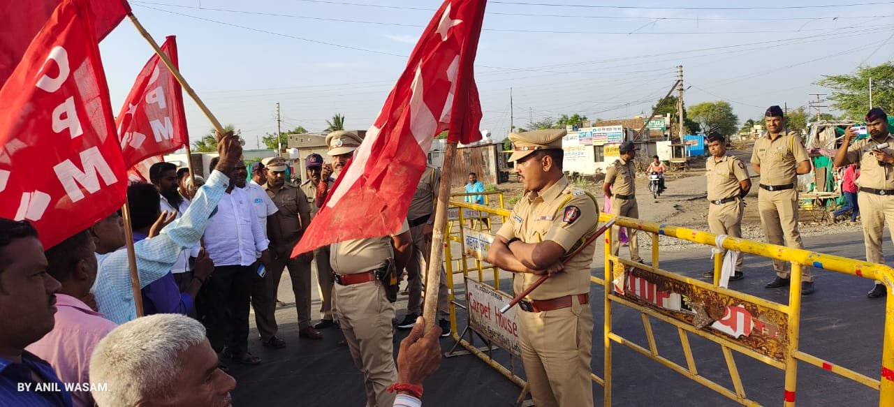 या पार्श्वभूमीवर मार्क्सवादी कम्युनिस्ट पक्षाच्या वतीने जिल्हा सचिव एडवोकेट एम एच शेख यांच्या नेतृत्वाखाली शेकडो कार्यकर्ते हातात माकपचे लाल झेंडे घेऊन गोदूताई परुळेकर वसाहतीकडून कारखान्याकडे निघाले होते.