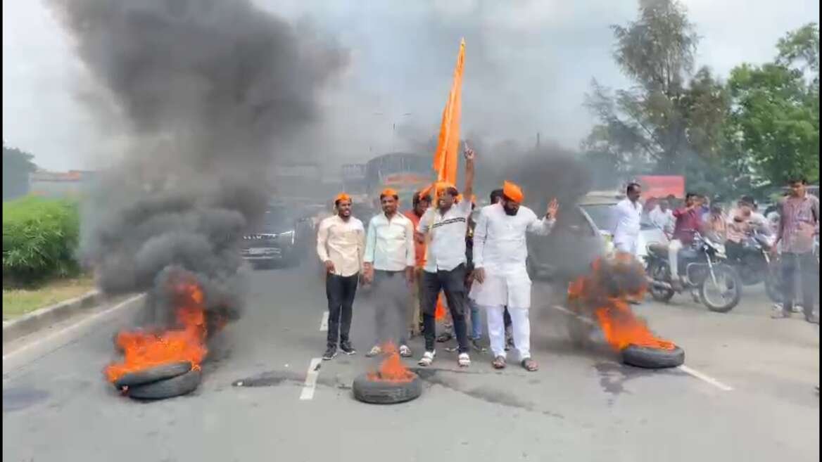 मराठा आरक्षणासाठी जालन्यामध्ये आंदोलन केले जात आहे या आंदोलनाला गालबोट लागले असून आंदोलनकर्ते मराठा समाजावर पोलिसांनी अमानुषपणे लाठीचार्ज केल्यानंतर राज्यांमध्ये सर्वत्र संतापाची लाट उसळली आहे. त्याच पार्श्वभूमीवर सोलापूर शहरात देखील सदरच्या घटनेचे पडसाद उमटत आहेत मराठा क्रांती मोर्चाच्या वतीने सोलापूर पुणे महामार्गावर टायर जाळून रास्तारोको करत सरकारचा निषेध नोंदवण्यात आला. यावेळी मराठा क्रांती मोर्चा चे राम जाधव यांनी अधिक माहिती देताना निष्क्रिय सरकारवर ताशेरे ओढले. तत्पूर्वी मराठा क्रांती मोर्चाच्या पदाधिकाऱ्यांनी आणि मराठा समाज बांधवांनी पुणे महामार्गावर रास्ता रोको आंदोलन करत विविध घोषणा दिल्या.