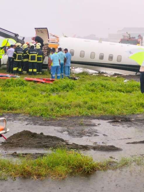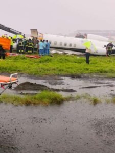 मुंबई विमानतळावर मोठी दुर्घटना टळली आहे. मुसळधार पावसामुळे येथे एक चार्टर्ड विमान धावपट्टीवरून घसरल्याचे वृत्त आहे. या विमानात 6 प्रवासी आणि 2 क्रू मेंबर होते.डिजिसीएने दिलेल्या माहितीनुसार, VSR Ventures Learjet 45 विमान VT-DBL विशाखापट्टणमहून मुंबईला उड्डाण करत मुंबई विमानतळावर धावपट्टी 27 वर लँडिंग करताना धावपट्टीवर कोसळलं.