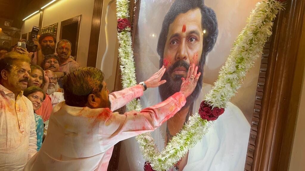 मुख्यमंत्र्यांची गुरू आनंद दिघेंना ‘रंग‘वंदना… मुख्यमंत्री एकनाथ शिंदे यांनी आज धुलीवंदनाच्या दिवशी आनंद दिघे यांच्या प्रतिमेला रंग लावत वंदन केले.