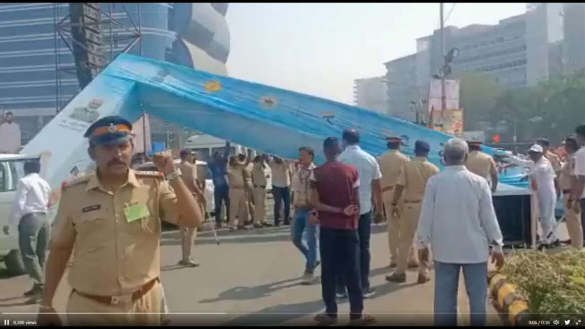 आज पंतप्रधान नरेंद्र मोदी हे मुंबई दौऱ्यावर आहेत. त्यांच्या हस्ते विविध विकास कामांचं उद्घाटन होणार आहे. त्यानंतर आज पंतप्रधान नरेंद्र मोदी यांची वांद्रे-कुर्ला संकुलात भव्य अशी सभा होणार आहे. सभेच्या ठिकाणी मोठी सजावट करण्यात आली आहे. मोदींच्या स्वागतासाठी भव्य अशी कमान उभारण्यात आली होती. मात्र ही कमान कोसळली आहे. आता घटनास्थळावरून ही कमान हटवण्याचं काम सुरू आहे. पोलीस आणि कार्यकर्त्यांकडून ही कमान हटवली जात आहे.