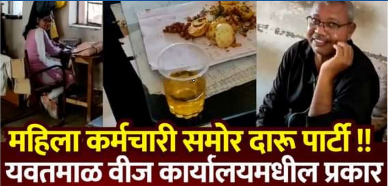 यवतमाळ: – महिला कर्मचारी समोर वीज कार्यालयात दारू पार्टी !!