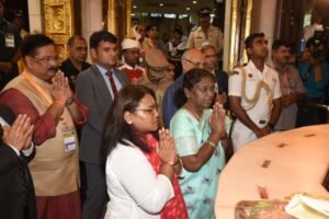 गुरुवार दिनांक ६ जुलै २०२३ रोजी सायंकाळी ४:३० वाजता भारत देशाचे राष्ट्रपती माननीय श्रीमती द्रौपदी मुर्मू यांनी सह परिवार श्रींचे दर्शन घेतले यावेळी श्री सिद्धिविनायक गणपती मंदिर न्यासाचे अध्यक्ष श्री आदेश चंद्रकांत बांदेकर ( राज्यमंत्री दर्जा ) यांनी पुष्पगुच्छ देऊन त्यांचे स्वागत केले त्याप्रसंगी महारष्ट्र राज्याचे राज्यपाल माननीय श्री रमेश बैस उपस्थित होते.