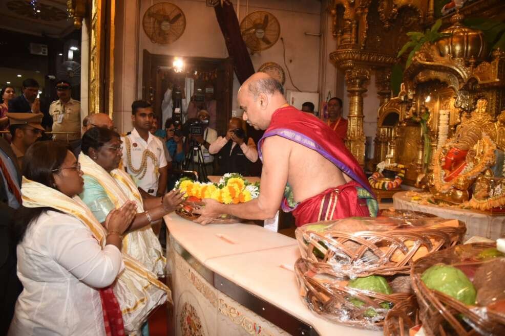 गुरुवार दिनांक ६ जुलै २०२३ रोजी सायंकाळी ४:३० वाजता भारत देशाचे राष्ट्रपती माननीय श्रीमती द्रौपदी मुर्मू यांनी सह परिवार श्रींचे दर्शन घेतले यावेळी श्री सिद्धिविनायक गणपती मंदिर न्यासाचे अध्यक्ष श्री आदेश चंद्रकांत बांदेकर ( राज्यमंत्री दर्जा ) यांनी पुष्पगुच्छ देऊन त्यांचे स्वागत केले त्याप्रसंगी महारष्ट्र राज्याचे राज्यपाल माननीय श्री रमेश बैस उपस्थित होते.