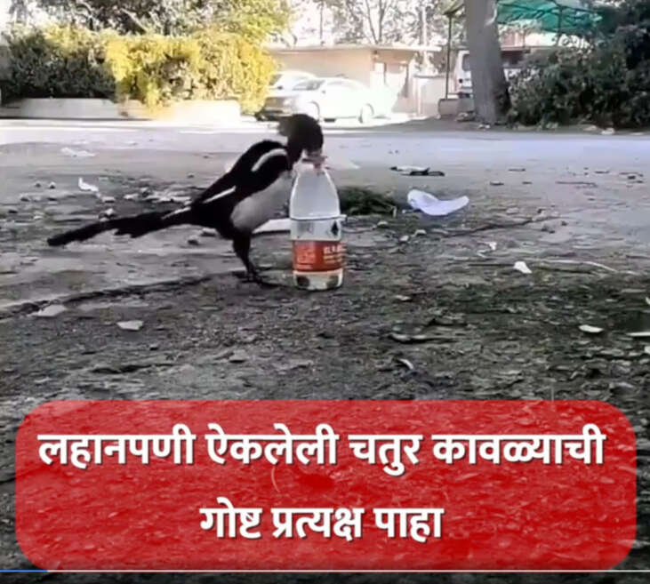 लहानपणी ऐकलेली चतुर कावळ्याची गोष्ट प्रत्यक्ष पाहा…
