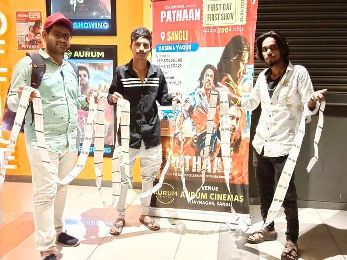 भगव्या बिकिनीमुळे चर्चेत आलेला शाहरुख खानचा पठाण चित्रपट प्रदर्शित होण्यापूर्वीच हाउसफुल होताना दिसतोय. शाहरुखच्या एका सांगलीतील फॅनने चक्क अख्ख थिएटर बुक केले आहे. चाहत्यानं त्याचे फोटो ट्विटरवर पोस्ट करत शाहरुख खानला टॅग केलं होतं. शाहरुखने रिप्लाय देत त्याचे आभार मानले आहेत. प्रसिद्ध अभिनेता शाहरुख खान आणि अभिनेत्री दीपिका पादुकोण यांचा “पठाण” हा चित्रपट २५ जानेवारी रोजी संपूर्ण भारतात प्रदेशात होणार आहे.