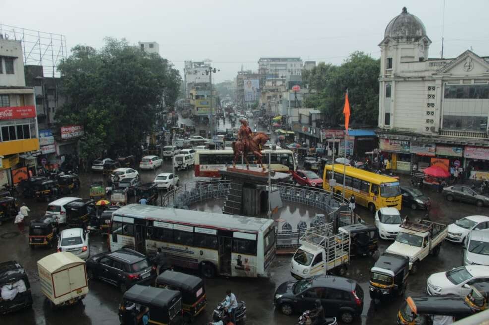 सोलापुरात पावसामुळे शिवाजी चौक वाहतुक कोंडी…..