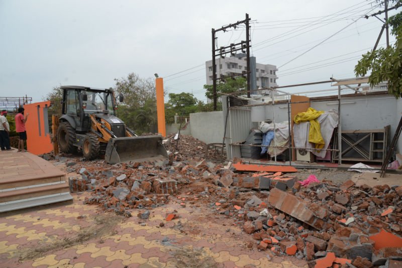 यानंतर महापालिकेने गुरुवारी दुपारी बांधकाम पाडायला सुरुवात केली. यावेळी महापालिकेचे अतिरिक्त आयुक्त निखिल मोरे, सहाय्यक पोलीस आयुक्त संतोष गायकवाड यांच्यासह महापालिका आणि पोलीस खात्याचा मोठा फौजफाटा होता. पाडकाम सुरू असताना राजकीय नेत्याच्या कार्यकर्त्यांनी अटकाव करण्याचा प्रयत्न केला. पोलिसांनी त्यांना समज देऊन बाजूला केले. दुपारी अडीच वाजेपर्यंत पाडकामाची कारवाई पूर्ण झाली होती.