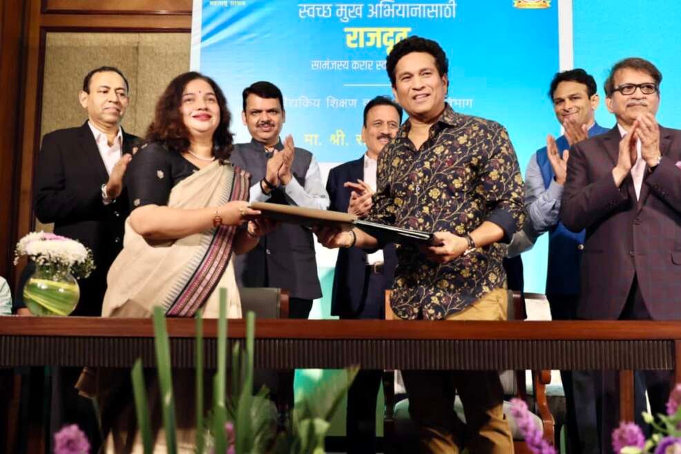 उपमुख्यमंत्री देवेंद्र फडणवीस आणि वैद्यकीय शिक्षण, क्रीडा आणि युवक कल्याण मंत्री श्री. गिरीश महाजन यांच्या उपस्थितीत वैद्यकीय शिक्षण विभागामार्फत स्वच्छ मुख अभियानासाठी SMILE AMBASSADOR म्हणून भारतरत्न श्री.सचिन तेंडुलकरची नियुक्ती करण्यासंदर्भात आज (30 मे) सामंजस्य करार करण्यात आला आहे. स्वच्छ मुख अभियान हे एक ओरल हेल्थ मिशन आहे. वैद्यकीय शिक्षण विभागामार्फत हा उपक्रम पुढील 5 वर्षांसाठी राबवण्यात येणार आहे. या उपक्रमाचा सचिन हा सदिच्छा दूत झाला आहे.