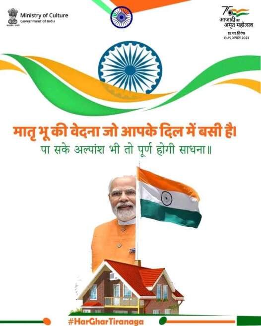 पंतप्रधानांनी ट्विटर संदेशात म्हटले आहे, “समाज माध्यमांवरील आपले फोटो बदलून ‘हर घर तिरंगा’ साकारूया आणि #HarGharTiranga या खास प्रयत्नाला पाठिंबा दर्शवून आपल्या लाडक्या देशाशी असलेले बंध आणखी घट्ट करूया.”