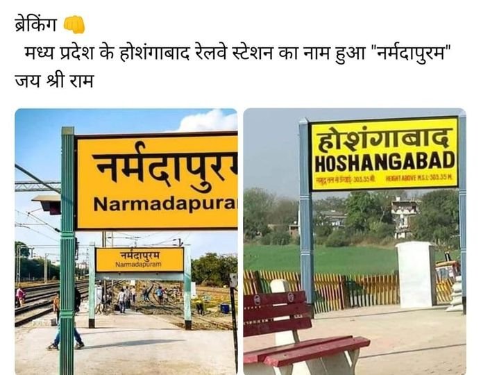 वर्षभराच्या प्रतीक्षेनंतर नर्मदा जयंतीच्या दिवशी रेल्वेने नर्मदापुरम शहर स्टेशनचे नाव होशंगाबादवरून बदलून नर्मदापुरम करण्याचा आदेश जारी केला. अखेर होशंगाबाद रेल्वे स्थानकही या नावातून मुक्त झाले. आता हे रेल्वे स्थानक नर्मदापुरम रेल्वे स्थानक म्हणूनही ओळखले जाणार आहे.रेल्वेकडून आदेश आल्यानंतर रेल्वे स्थानकावर नर्मदापुरम रेल्वे स्थानकाच्या नावाचे फलकही लावण्यात येणार आहेत. गेल्या वर्षी ८ फेब्रुवारी २०२२ रोजी नर्मदा जयंती सोहळ्यात मुख्यमंत्री शिवराज सिंह चौहान यांनी होशंगाबादचे नामांतर नर्मदापुरम करण्याची घोषणा केली होती. यानंतर शहर व जिल्ह्याचे नाव बदलण्यात आले. मात्र नर्मदापुरमचा आदेश केंद्र सरकारच्या अखत्यारीतील विभागांपर्यंत पोहोचला नव्हता. मध्यवर्ती विभागांच्या त्या कार्यालयांमध्ये अनेक महिने होशंगाबाद हेच नाव लिहिले जात होते. आता रेल्वे स्टेशनच्या प्लॅटफॉर्मला होशंगाबादऐवजी नर्मदापुरम असे नाव देण्यात आले आहे.