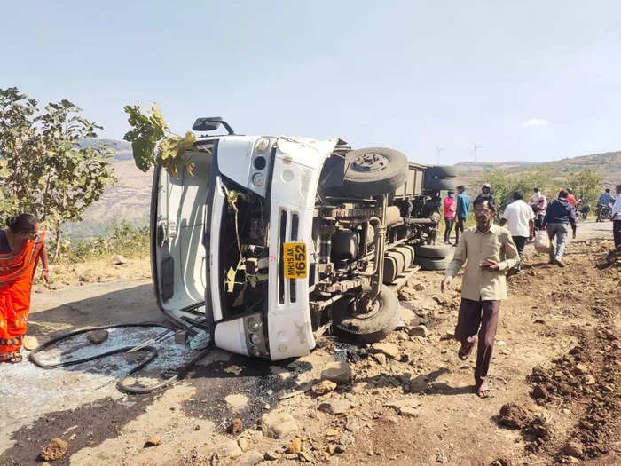 शर्मा टूर्स अँड ट्रॅव्हल ची ही बस असून यात इस्कॉन मंदिर संस्थेचे चाळीस विद्यार्थी होते.चालकाच्या प्रसंगावधनतेमुळे सुदैवाने मोठी जीवितहानी टळली.पोलीस प्रशासनाला अपघाताची माहिती मिळताच पोलीस कर्मचाऱ्यांनी घटनास्थळी दाखल झाले पाहणी करून क्रेनच्या सहाय्याने गाडी बाजूला सारत परस्थिती नियंत्रनात आणली नाशिक जिल्ह्यात गेल्या काही दिवसांपासून अपघातांची संख्या वाढली आहे. आज पुन्हा एका बस ला अपघात झाला असून सहलीसाठी आलेले बसमधील विद्यार्थी जखमी झाले आहेत.