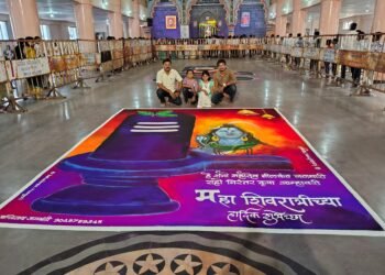 Read moreसोलापूर - महाशिवरात्रीच्या पावन पर्वानिमित्त १५×१६ फूट आकाराची भव्य आणि आकर्षक रांगोळी साकारण्यात आली. सुमारे १५ किलो रंग व रांगोळी ...