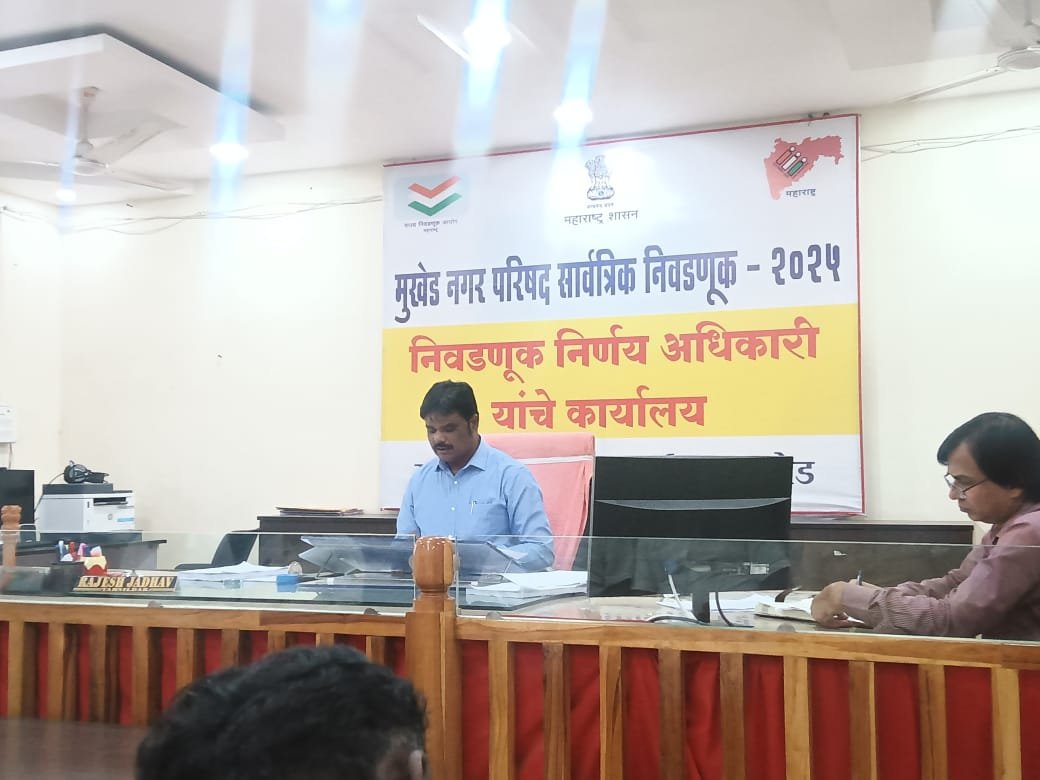 मुखेड / नांदेड – निवडनुक आयोगाने नुकतेच जाहिर केलेल्या नगर परिषद निवडनुकिचे बिगुल जाहिर होताच मुखेड नगरपरिषद सार्वत्रिक निवडणुकी साठी शासकिय यंञना सज्ज झाली असुन २७ मतदान केंद्रावर मतदान होणार असुन दि. २ डिसेंबर २५ रोजी मतदान तर बुधवार ३ डिसेंबरला तहसील कार्यालयात मतमोजणी होणार असुन या निवडणुकीसाठी २६ हजार ६५६ मतदार मतदानाचा हक्क बजावनार आहेत.या नप सार्वत्रिक निवडणूकीचा कार्यक्रम ४ नोव्हेंबर पासुन राज्य निवडणूक आयोगाने जाहीर केला असून नगरपरिषद कार्यक्षेत्रात मंगळवार पासून आचारसंहिता लागू झाली आहे.
