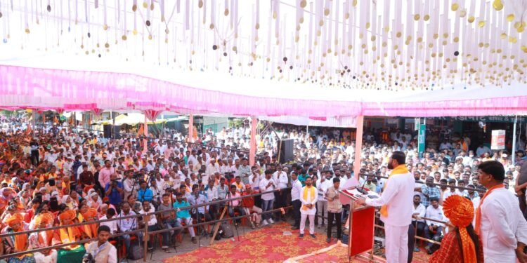 व्यासपीठावर आमदार राजू खरे, राष्ट्रवादी(अजित पवार)चे जिल्हाध्यक्ष उमेश पाटील शिवसेना ( शिंदे)चे ज जिल्हाप्रमुख चरणराज चवरे, शिवसेनेच्या नगराध्यक्षाच्या उमेदवार सिद्धी राजू वस्त्रे, माजी नगराध्यक्षतथा शिवसेना (शिंदे)ओबीसी विभागाचे महाराष्ट्राचे अध्यक्ष रमेश बारसकर आदीसह पदाधिकारी, शिवसैनिक उपस्थित होते