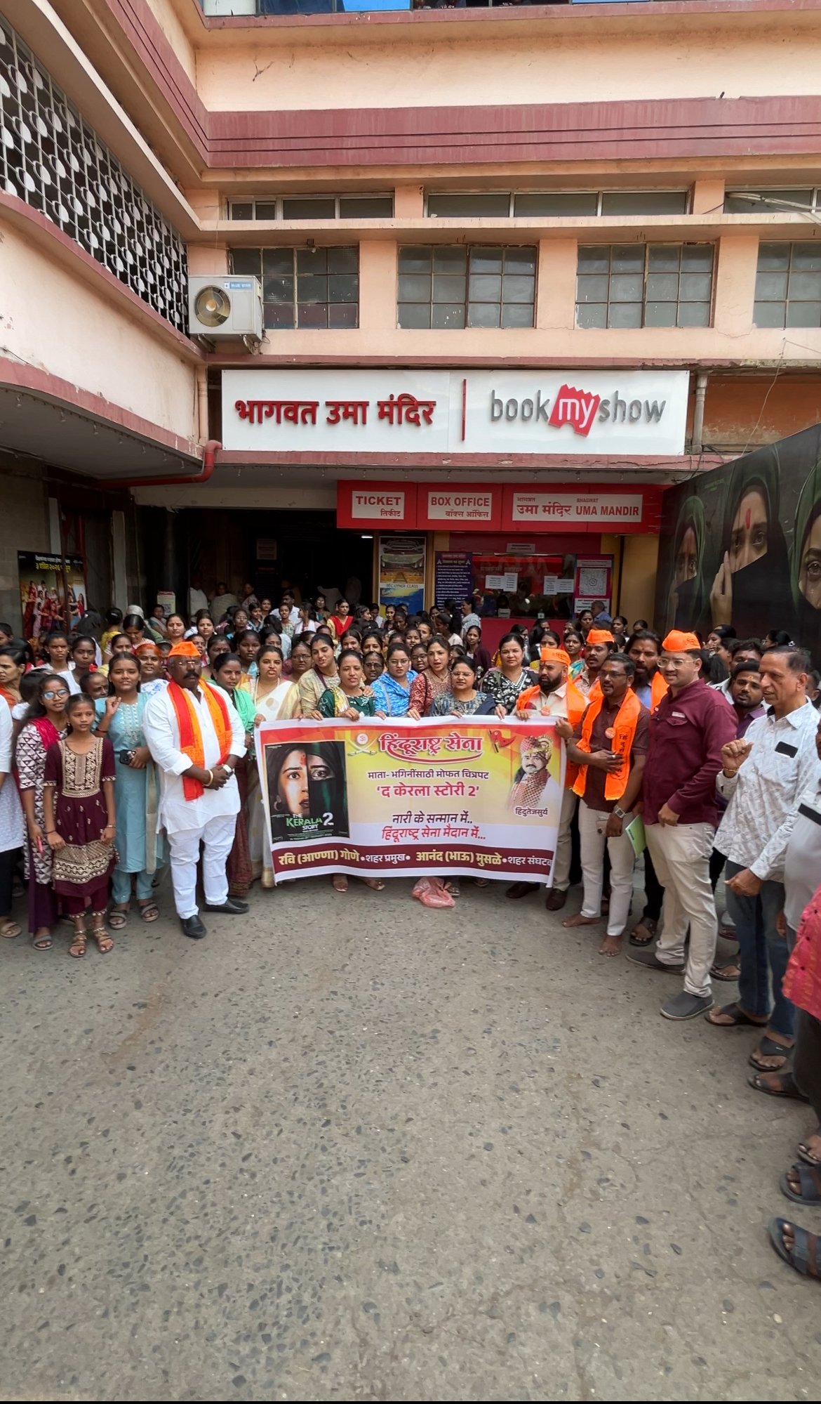चित्रपट सुरू होण्यापूर्वी उपस्थित माता-भगिनींनी “जय श्रीराम” तसेच “भारत माता की जय” अशा घोषणांनी संपूर्ण परिसर दणाणून सोडला.