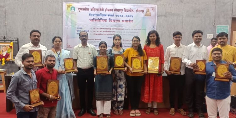 बार्शी – पुण्यश्लोक अहिल्यादेवी होळकर सोलापूर विद्यापीठ, सोलापूर यांच्यावतीने घेण्यात आलेल्या ‘सृजनरंग नियतकालिक स्पर्धा-२०२४-२५’ मध्ये येथील श्री शिवाजी महाविद्यालयाने विविध कला प्रकारांत एकूण दहा पारितोषिकांसह उत्कृष्ठ अंकासाठीचे तृतीय क्रमांकाचे पारितोषिक पटकावले.