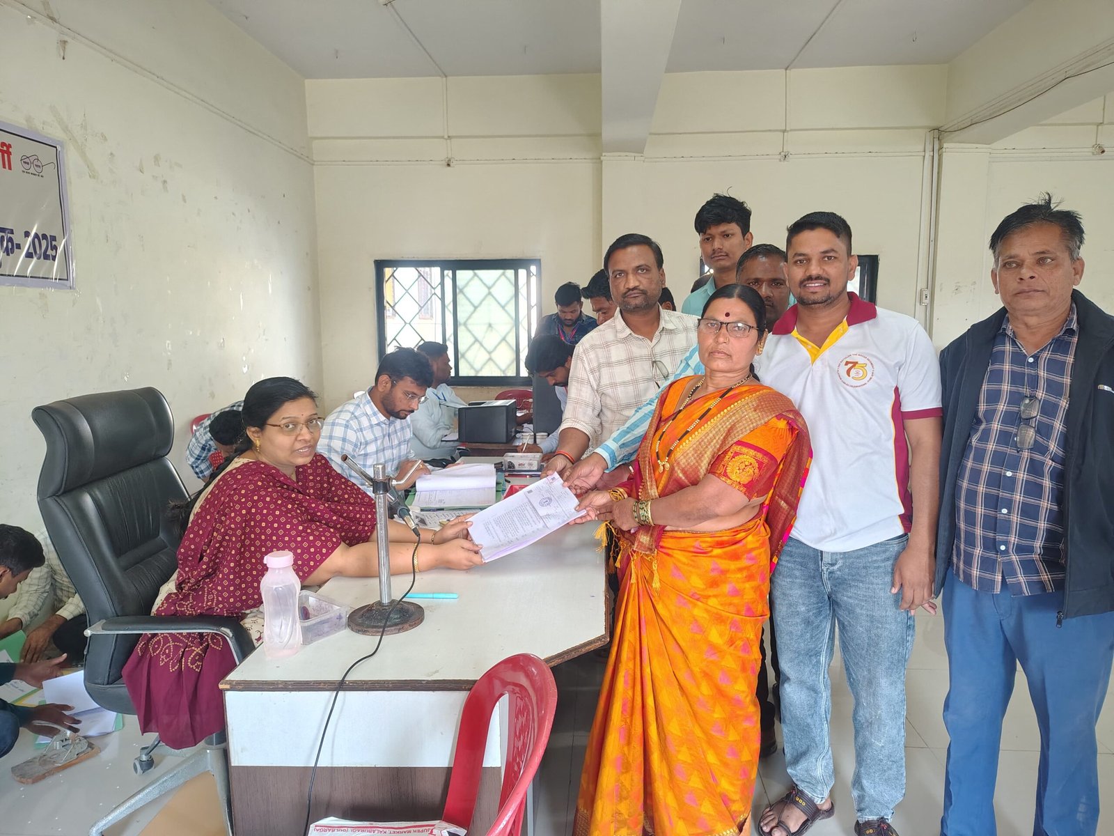 मैंदर्गी नगरपरिषदेच्या नगराध्यक्ष पदासाठी स्थानिक गटाकडून माजी नगरसेविका शिवम्मा यल्लप्पा पोतेनवरू यांचे नामनिर्देशन अर्ज दाखल