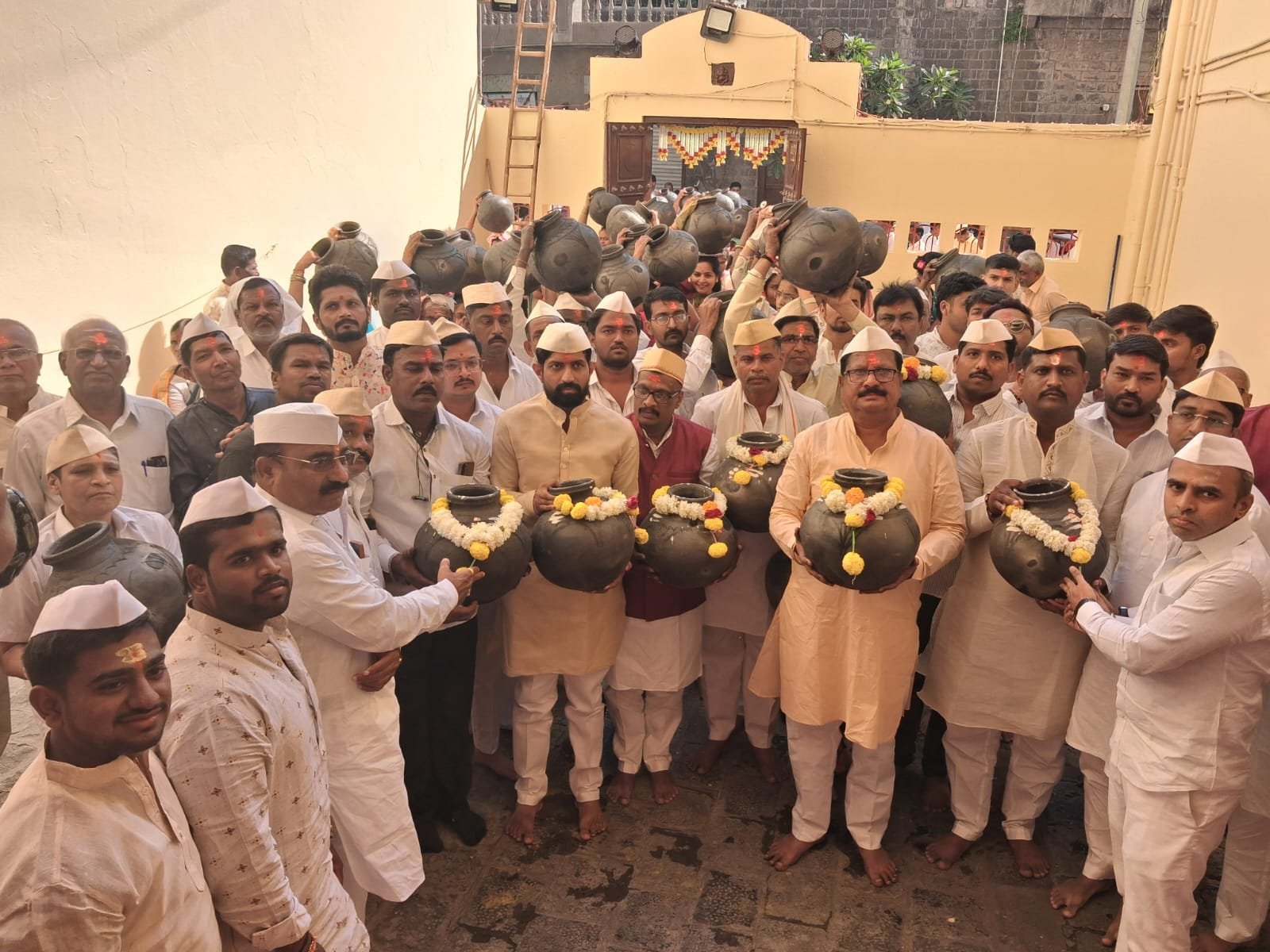 सोलापूर : सिद्धेश्वर महाराजांच्या अक्षता सोहळ्यानिमित्त शनिवारी कसब्यातील कुंभार कन्येच्या माहेरांकडून ५६ मातीच्या घागरी यात्रेचे प्रमुख मानकरी राजशेखर हिरेहब्बू यांच्याकडे सुपूर्द केल्या. यात कुंभार समाजातील महिलांसह भाविक मोठ्या प्रमाणात सहभागी झाले होते.