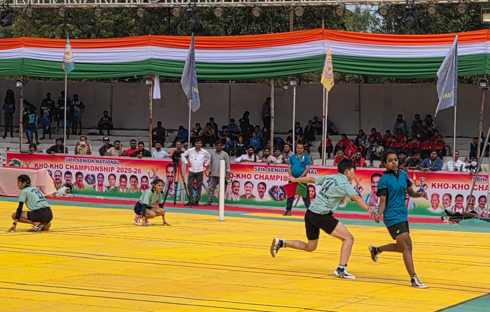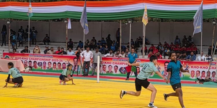 तेलंगणा : रेल्वे ग्राऊंडवर सुरू असलेल्या ५८ व्या वरिष्ठ राष्ट्रीय खो-खो चॅम्पियनशिपमध्ये आज खेळ, वेग, चपळाई आणि डावपेचांचा जबरदस्त संगम पाहायला मिळाला. भारतीय खो-खो महासंघाच्या मान्यतेने तेलंगणा खो-खो असोसिएशन आयोजित या स्पर्धेत महिला आणि पुरुष गटातील सामन्यांनी चांगलीच रंगत आणली. महिलांमध्ये तेलंगणा व आसाम, तर पुरुषांमध्ये विदर्भ व हरियाणा संघांनी प्रतिस्पर्ध्यांवर मोठ्या फरकाने मात करत आपले वर्चस्व ठसठशीतपणे सिद्ध केले.