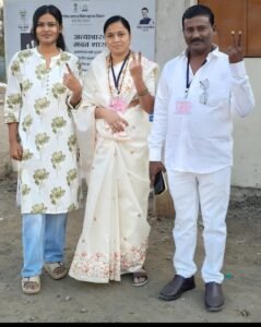 (२)काँग्रेसच्या उमेदवार एडवोकेट सोनल जानराव डावीकडे आणि त्यांच्या कुटुंबीयांनी मतदान केले.