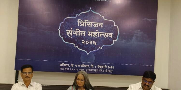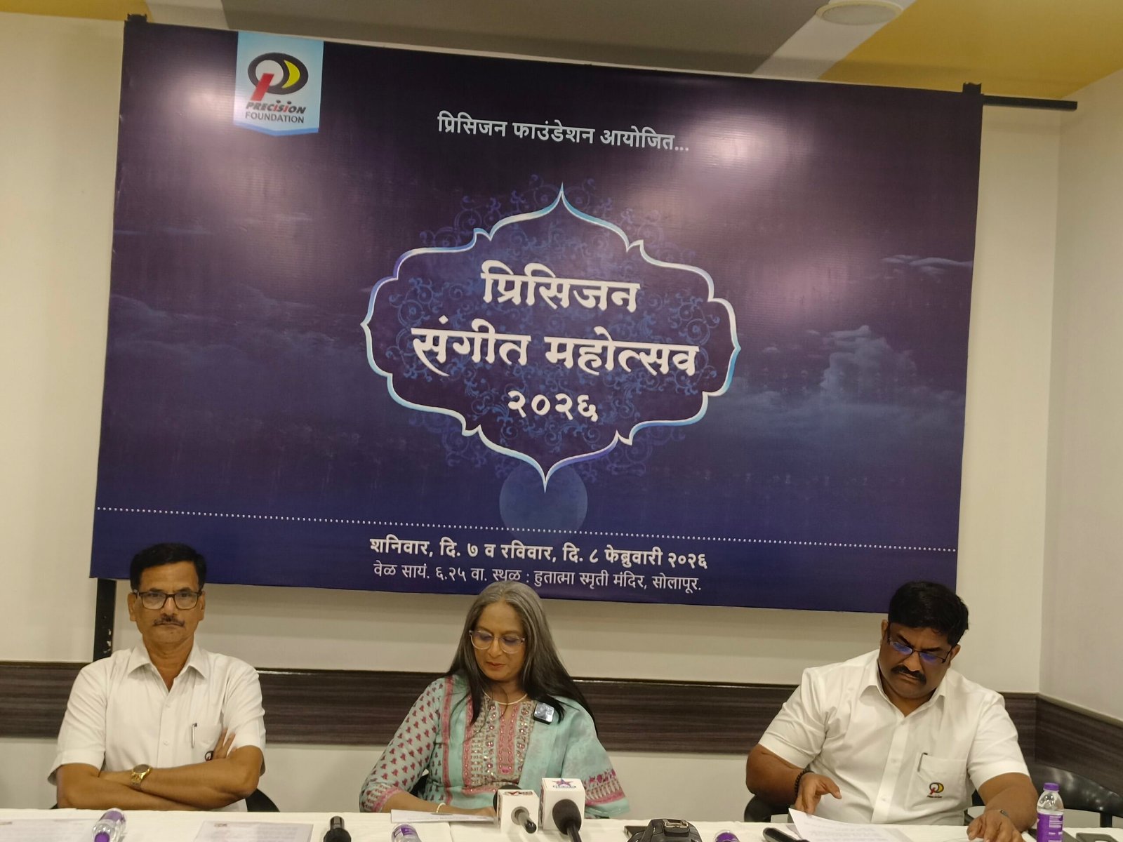 सोलापूर : प्रिसिजन फाऊंडेशनच्या वतीने येत्या शनिवार व रविवार, दि. ७ आणि ८ फेब्रुवारी २०२६ रोजी “प्रिसिजन संगीत महोत्सव” आयोजित करण्यात आला आहे.प्रिसिजनच्या परंपरेनुसार दोन्ही दिवस कार्यक्रमाची सुरुवात सायंकाळी ठीक ६.२५ वाजता होणार आहे. महोत्सवाचे हे अकरावे वर्ष आहे. सोलापूरमधील हुतात्मा स्मृति मंदिर येथे हा स्वरमहोत्सव रंगणार असल्याची माहिती प्रिसिजन फाऊंडेशनच्या अध्यक्षा डॉ. सुहासिनी शहा यांनी पत्रकार परिषदेत दिली.