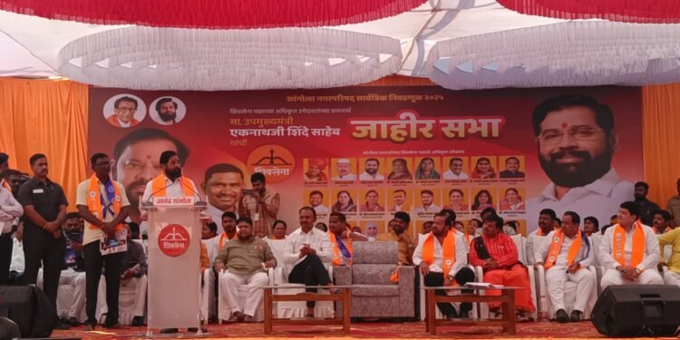 पुढे बोलताना एकनाथ शिंदे म्हणाले, एका शेतकरी कुटुंबातील मुलाने राज्याचा मुख्यमंत्री होऊन गोरगरिबांना खऱ्या अर्थाने न्याय दिला. मुख्यमंत्री माझी लाडकी बहीण योजना उपमुख्यमंत्री एकनाथ शिंदे असेपर्यंत चालू राहणार आहे. एसटीमध्ये प्रवाशांना ५०% सवलत, मुलींना उच्च शिक्षण मोफत, मुख्यमंत्री सहाय्यता निधीतून अनेक रुग्णांचे प्राण वाचवण्यासाठी दिलेले योगदान खूप मोठे आहे. तरी दि.२ डिसेंबरला होणाऱ्या मतदाना दिवशी सर्वांनी धनुष्यबाणावरती मतदान करून नगरपालिकेच्या निवडणुकीत शिवसेनेकडून उभे असलेल्या सर्व उमेदवारांना विजयी करा असे आवाहन त्यांनी शेवटी केले.