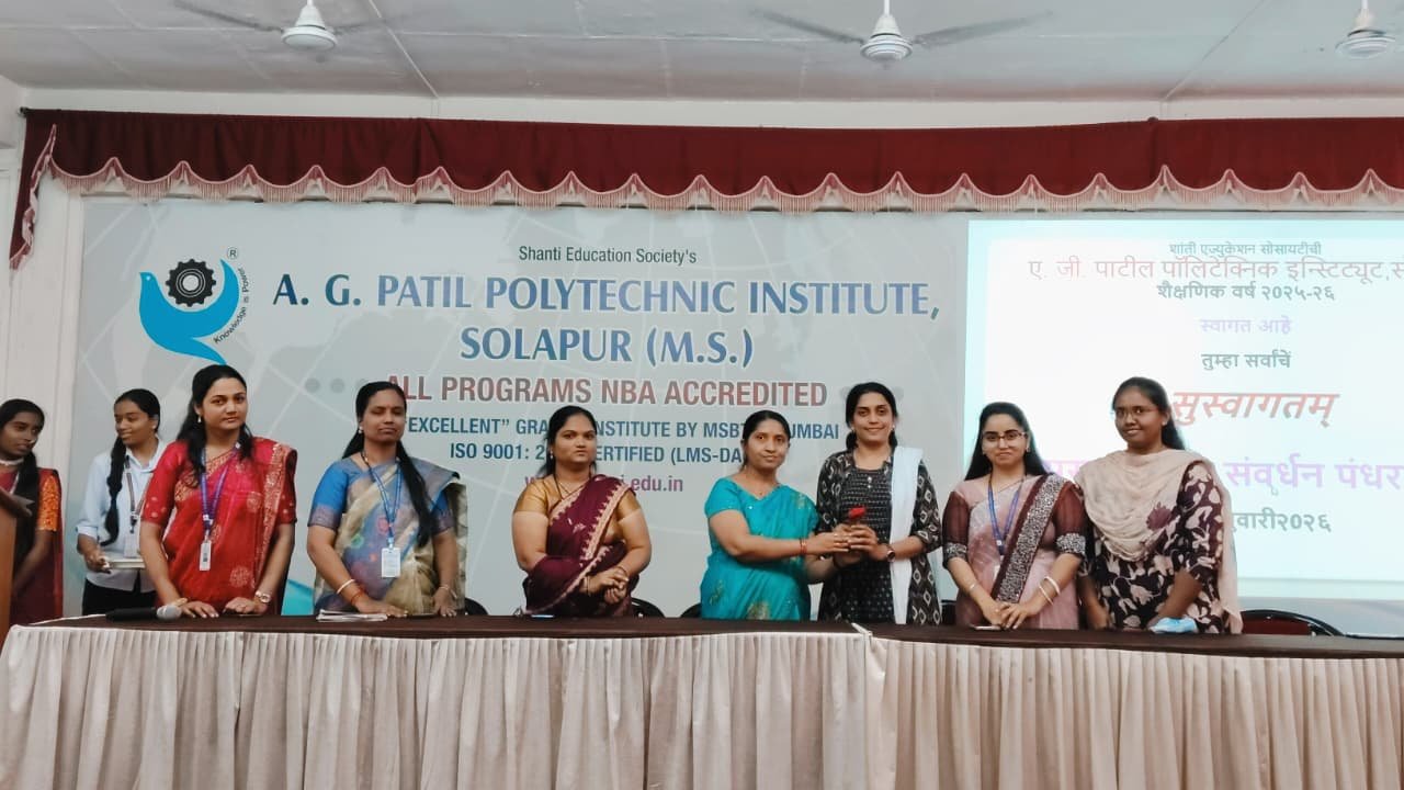 सोलापूर : मराठी भाषा ही आपली मातृभाषा असून तिचे जतन संवर्धन व प्रसार करणे ही आपली सामूहिक जबाबदारी आहे. या उद्देशाने विजापूर रोड सैफुल जवळील ए. जी. पाटील पॉलिटेक्निक इन्स्टिट्यूट येथे “मराठी भाषा संवर्धन पंधरवडा” निमित्त विद्यार्थ्यांसाठी सांस्कृतिक कार्यक्रम व काव्यवाचन आयोजित करण्यात आले होते .