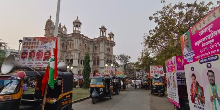 सोलापूर महानगरपालिका सार्वत्रिक निवडणूक प्रचारासाठी आवश्यक परवानग्या सुलभ, पारदर्शक व वेळेत मिळाव्यात, यासाठी महापालिकेच्या वतीने “एक खिडकी कक्ष” प्रभावीपणे कार्यान्वित करण्यात आला आहे. या कक्षाच्या माध्यमातून उमेदवार व राजकीय पक्षांना प्रचारासंबंधी सर्व परवानग्या एका ठिकाणी उपलब्ध करून दिल्या जात आहेत.याशिवाय, खाजगी जागांवर बॅनर व फलक लावण्यासाठीची परवानगी, तात्पुरते प्रचार कार्यालय उभारण्याची परवानगी तसेच प्रचारासाठी वाहन परवानगीदेखील एकाच ठिकाणी देण्यात येत आहे. या एक खिडकी कक्षामध्ये सोलापूर महानगरपालिका, पोलीस विभाग आणि प्रादेशिक परिवहन विभाग संयुक्तपणे कार्यरत आहेत.