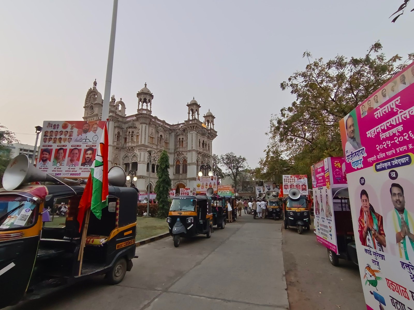 सोलापूर : महानगरपालिका सार्वत्रिक निवडणूक प्रचारासाठी महापालिका प्रशासकीय इमारत येथे “एक खिडकी कक्ष” कार्यान्वित करण्यात आला आहे. आज या ठिकाणी प्रचाराच्या रिक्षांची मोठी रांग लागली होती. इतर परवान्यांसाठीही मोठी गर्दी झाली होती. परवानगी देण्यात विलंब होत असल्याने कर्मचारी वाढविण्याची मागणी होत आहे..