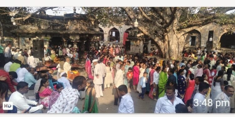 श्री सिध्देश्वर मंदिरात भाविकांची दर्शनासाठी लावलेली रिघ छायाचित्रात दिसत आहे. (छाया- प्रथमेशराजे,मंगळवेढा)
