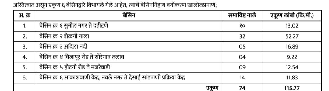 अ. क्र. बेसिन समाविष्ट नाले एकूण लांबी (कि.मी.)