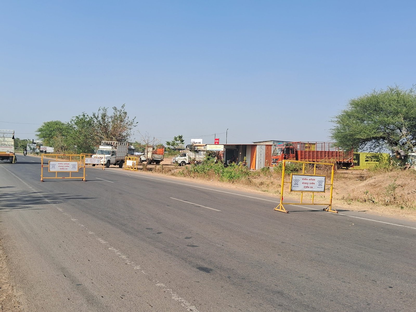 या बॅरिकेड्सवर ‘पोलीस अधीक्षक सोलापूर ग्रामीण’ असा स्पष्ट उल्लेख करण्यात आला असून, वाहनचालकांना सुरक्षित अंतर राखून, धीम्या गतीने वाहन चालवण्याबाबत स्पष्ट सूचना दिल्या आहेत.