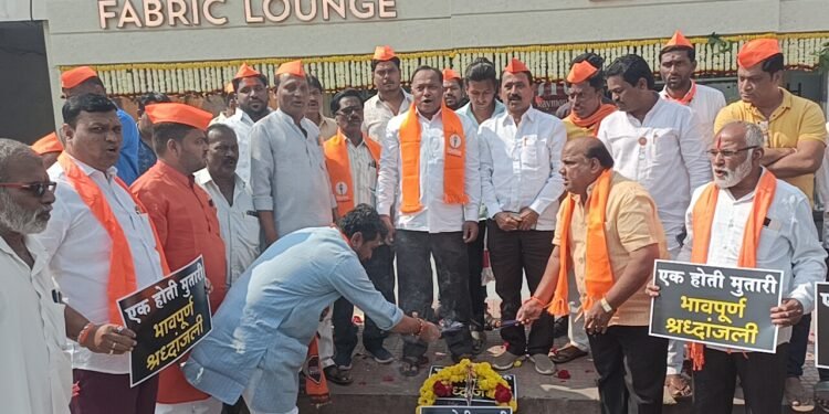 सोलापूर – पार्क स्टेडियम समोरील बसस्टॉप काढल्याच्या निषेधार्थ शिवसेना उद्धव बाळासाहेब ठाकरे व महाराष्ट्र नवनिर्माण सेनेच्या वतीने सोमवारी निदर्शने आंदोलने करत काढण्यात आलेल्या बसस्टॉपच्या त्या जागेवर श्रद्धांजली वाहण्यात आली.